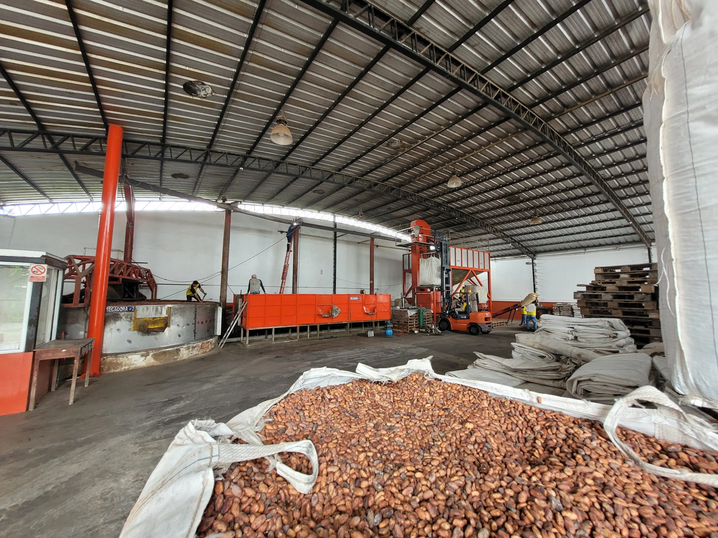 We operate our processing plant and central warehouse in Paraíso La 14 where we collect the cocoa directly from farmers or through local intermediaries after thorough quality control. All the cocoa we purchase we dry to export level, clean and bag it in our own facilities. The required fumigation takes place in our own warehouse where we finally stuff and seal the sea containers ourselves for subsequent transport to the ports of Guayaquil and Posorja. We control the whole supply chain from farm to port.